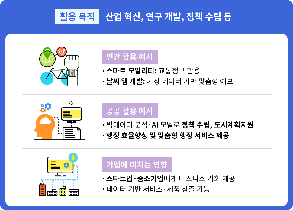 예를 들어, 민간기업은 교통정보나 날씨 데이터를 활용해 스마트